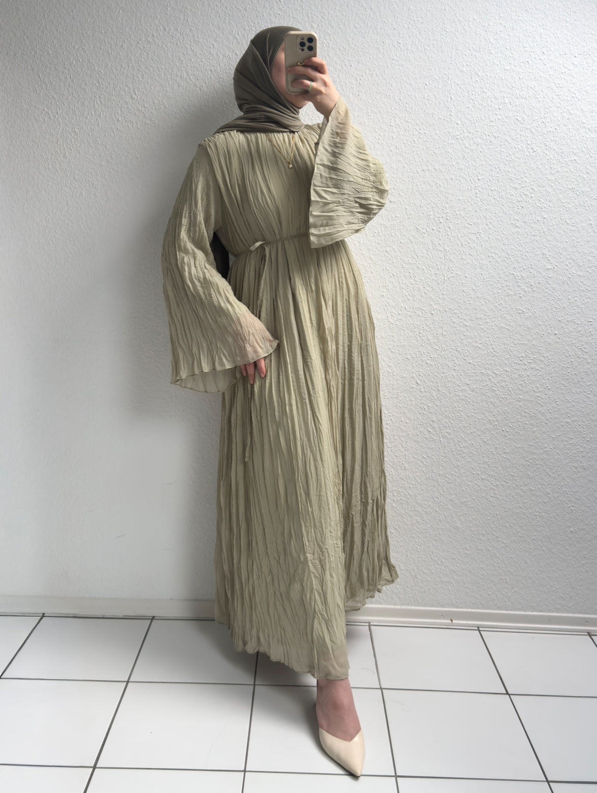Crinkle Chiffon Kleid - Grün