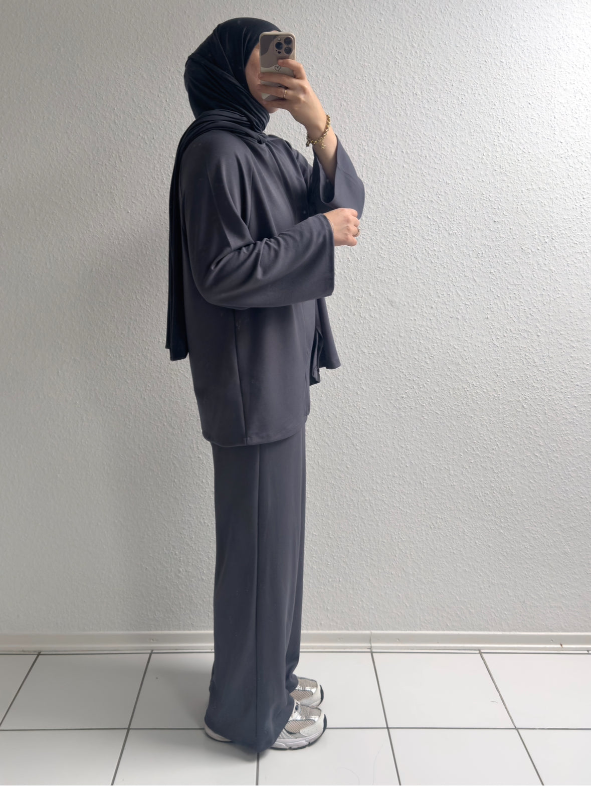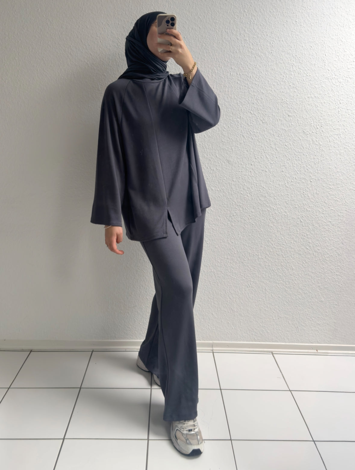 Unser Daily-Set ist besonders bequem, der Stoff fühlt sich wunderbar weich an und die Tunika hat kleine Schlitze am Saum.