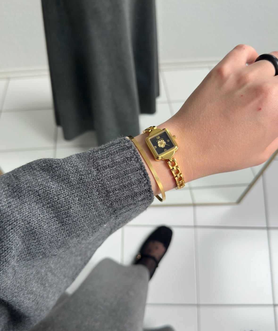 Für das Shooting wurde er mit dem Es wurde mit dem Rock unseres Golden-Kaşe-Zweiteilers in Anthrazit und dem Jersey-Penye-Schal in Farbe Nr. 10 kombiniert.