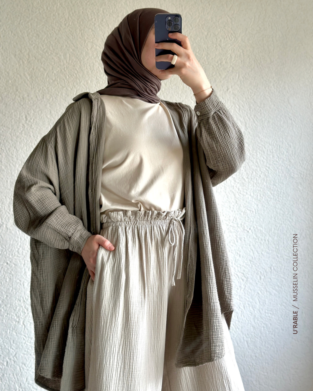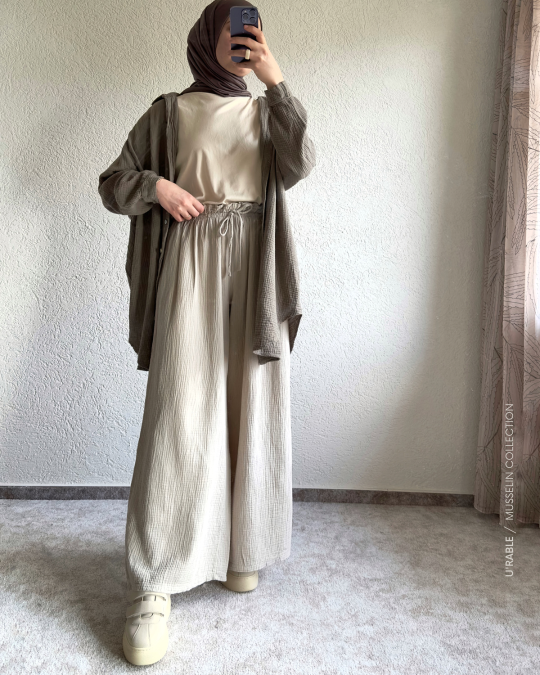 Not: Model olarak etek pantolon tarzı bol ve hatlarınızı belli etmeyecek bir pantolondur. Kendi bedeninizi sipariş verebilirsiniz. Yanlardan ceplidir, beli lastiklidir. Astarsızdır ve iç göstermez. Bol, salaş ve oldukça hafif bir pantolondur. Müslin gömleklerimiz ile aynı renklerde olduğu için takım olarak kombinleyebilirsiniz. 30 derecede hassas ayarda makinada yıkatabilirsiniz.