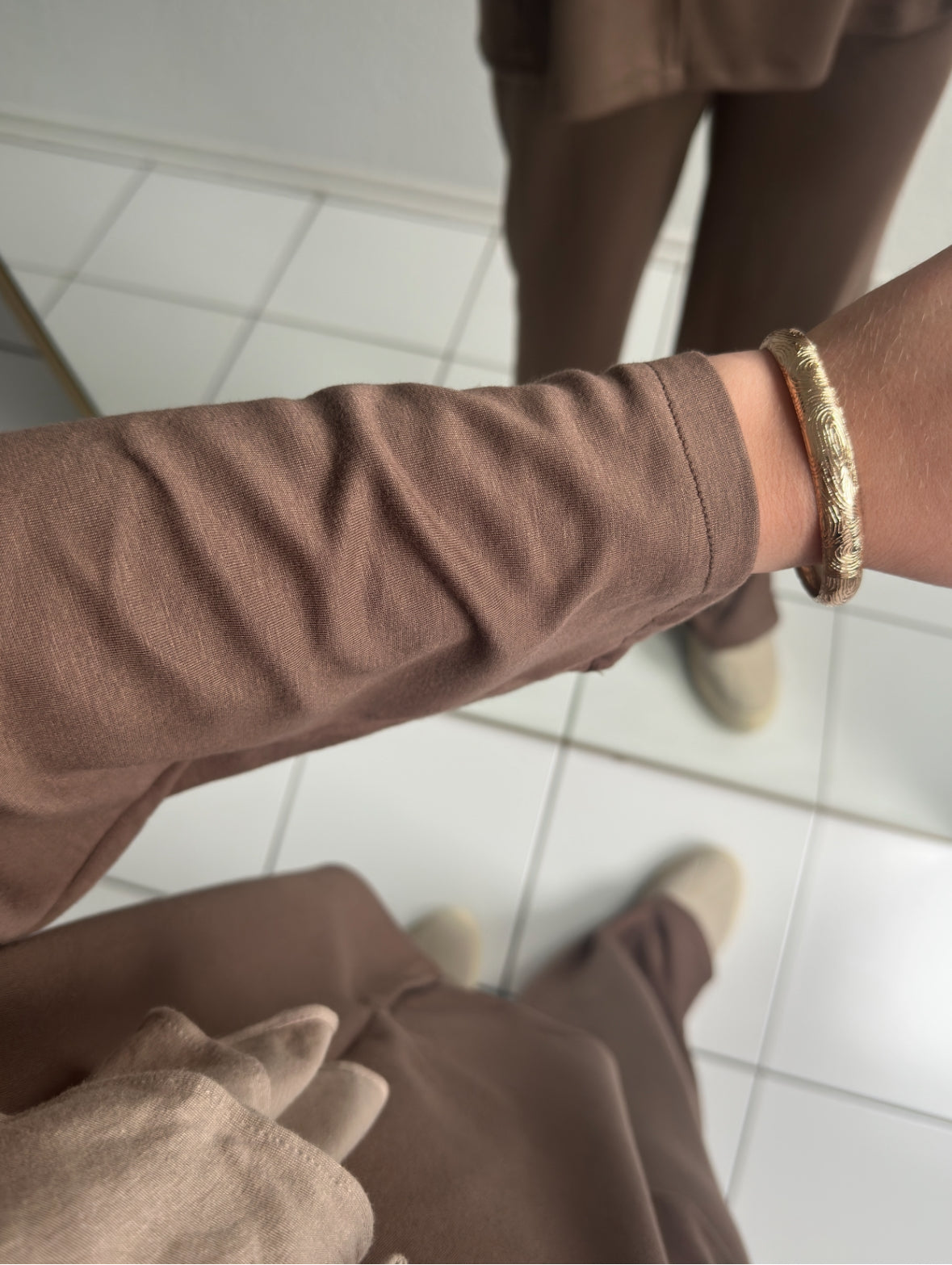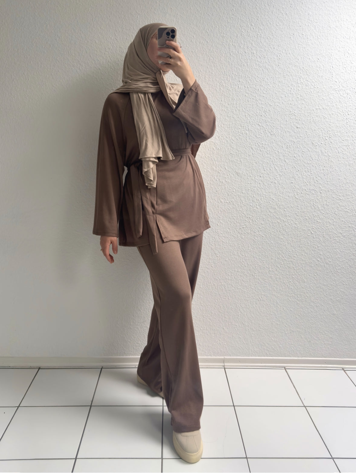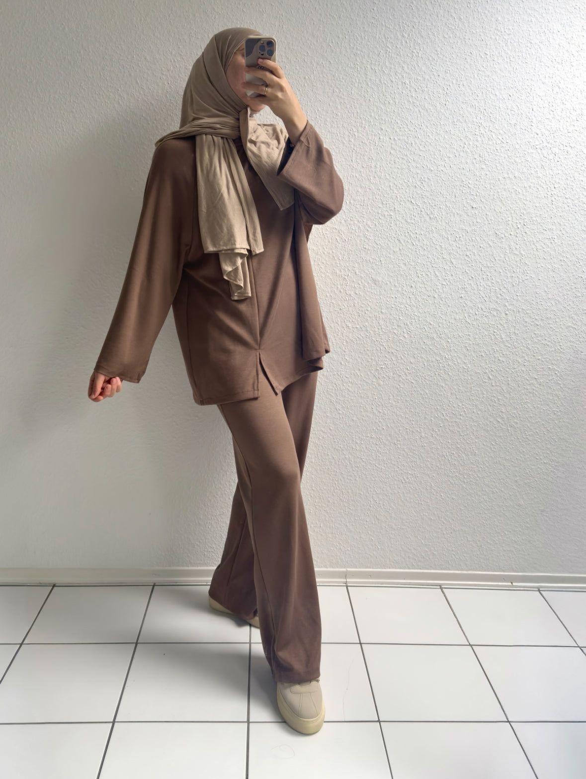 Unser Daily-Set ist besonders bequem, der Stoff fühlt sich wunderbar weich an und die Tunika hat kleine Schlitze am Saum.