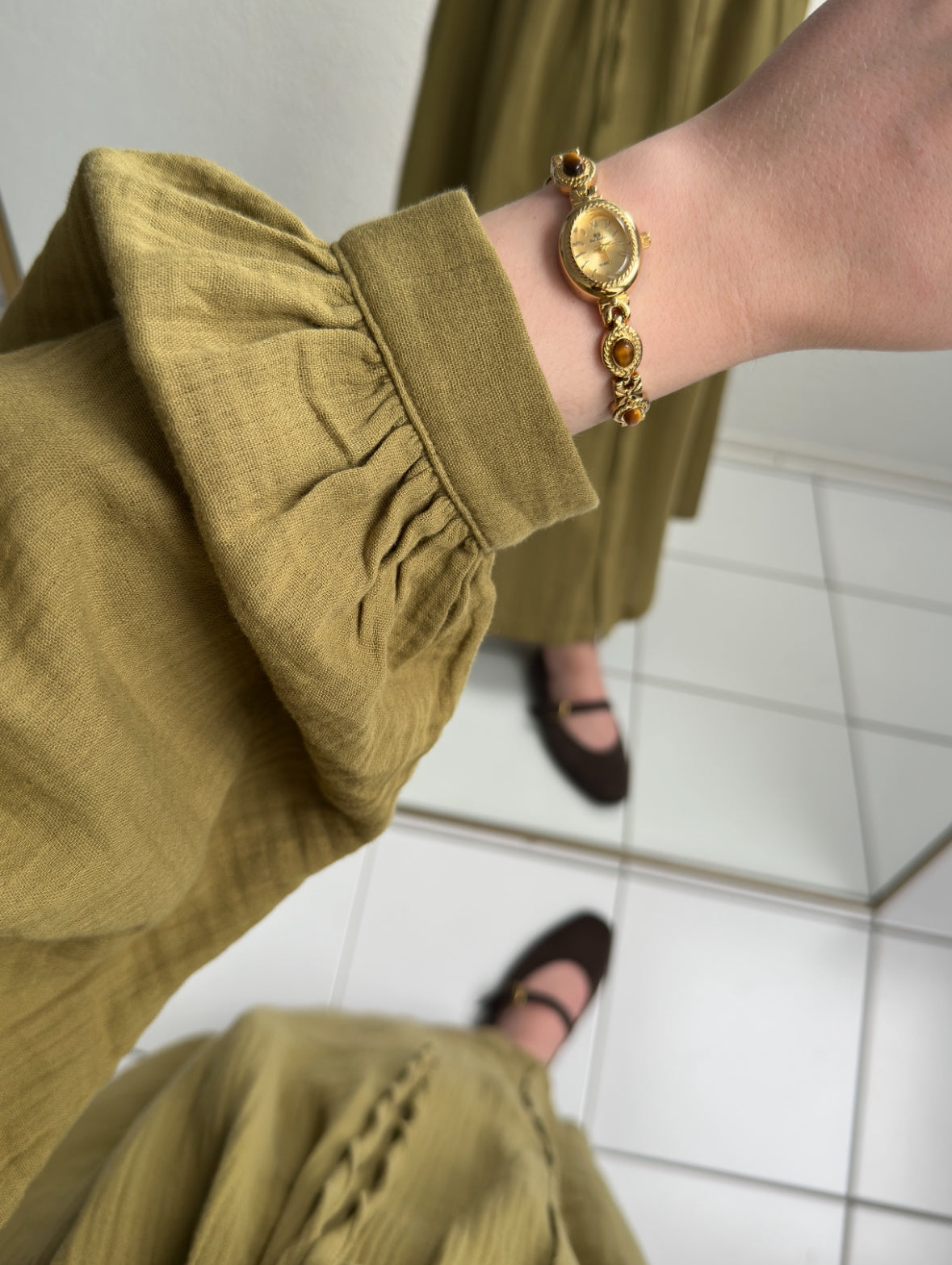 Geknöpftes Musselinkleid - Senf